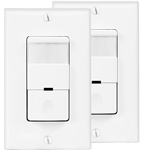 | Motion Detector Light Switch in Wall Sensor Switch, Occupancy Sensor Switch 500W LED CFL 1/8HP, Wall Plates Included, Neutral Wire Required, White |
